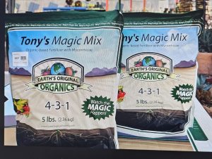 Tony’s Magic Mix is a powerful all-purpose organic fertilizer designed to feed both your plants and your soil. Derived from bat guano, kelp meal, neem seed meal, molasses, magnesium sulfate, volcanic ash, and Mycorrhizae, it provides balanced nutrition to the plant and the soil so you need nothing else. The combined ingredients lead to sustained growth, boosted root development, and improved the soil structure. It strengthens plant health while leading to increased yields. It improved the organic matter content of the soil, water holding capacity, and soil aeration, leading to better root development. It strengthens plant health while leading to increased yields. It improves the organic matter content of the soil, water holding capacity, and soil aeration, leading to better root development. Ideal for vegetables, fruits, herbs, trees, and ornamental landscape shrubs. It’s all natural, effective and has no fillers — just results.